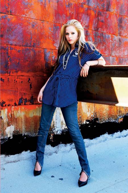 - Avirl Lavigne posando estilo casual con un toque de femenidad